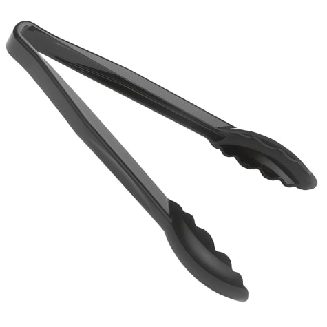 These black, scalloped 9" tongs are made of virtually unbreakable Camwear polycarbonate and are perfect for tossing salads or serving both hot and cold food. You can use them at the dinner table, on salad bars, in buffet lines, or wherever you may need them.