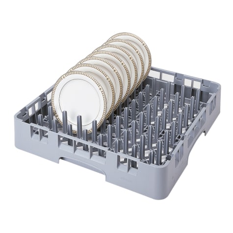 Wash, store and transport all your standard plates with this soft gray 9 row by 9 row Camrack peg rack. It has an inside height of 2-5/8" for holding standard depth plates, plus it stacks easily with other racks. The durable polypropylene construction withstands chemicals and temperatures up to 200°F; you can run it through any commercial dishwasher, too.