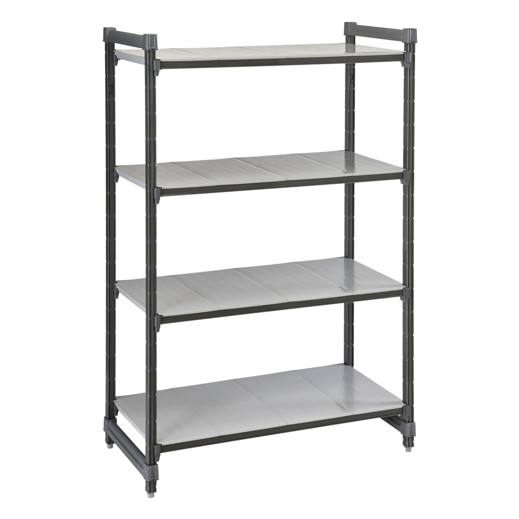 This lightweight and incredibly durable Elements Series Camshelving Unit is designed to withstand the toughest food service has to offer. Elements Series shelf plates have antimicrobial protection permanently molded in and are removable to run through a commercial dishwasher. Simple to assemble, traverses and shelf plates can be removed and adjusted to create custom heights and configurations in coolers, freezers, and dry pantries. Solid shelf plates offer stability, spill prevention, and faster cleaning, ideal for linens and breakable goods.