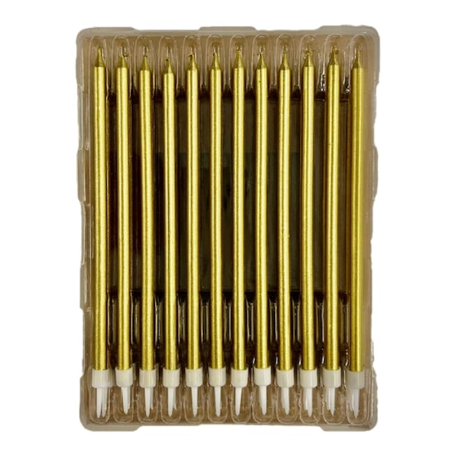 CANDLE,BIRTHDAY,GOLD W/HOLDER,24/PK