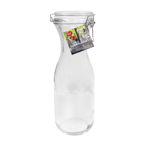 Serve cold beverages with this glass carafe from TableCraft. This carafe features a resealable lid and has a capacity of 34 ounces.