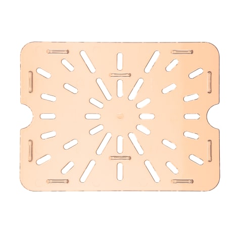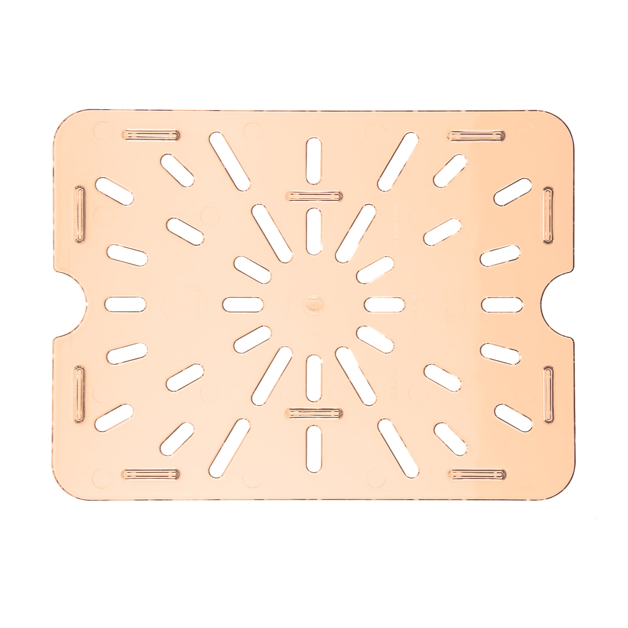 This StorPlus™ amber drain grate features pre-cut notches that drain excess liquid from food. The bottom tabs raise the grate from the base of the pan to keep food and liquid separate.