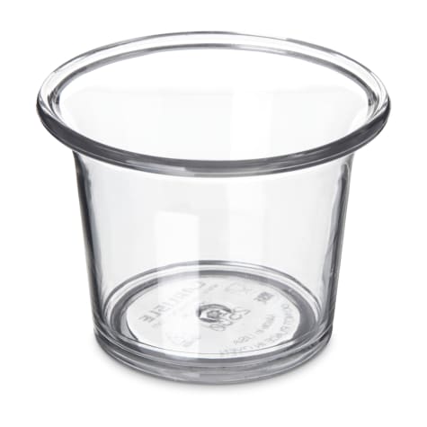 This 2.5 ounce sauce cup is ideal for individual servings of sauces, dressing, and condiments and the SAN construction makes this dish extra tough for even the busiest establishments.
