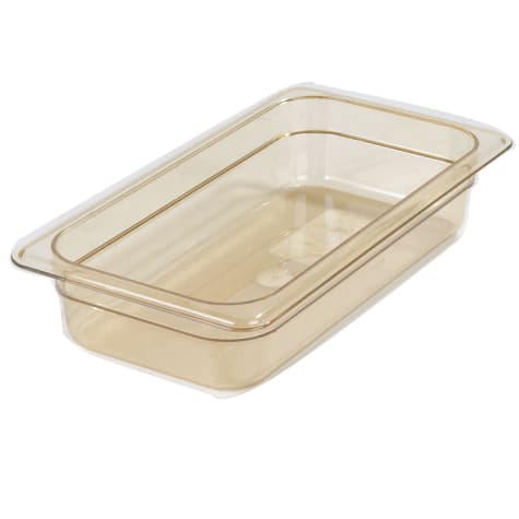 This StorPlus™ amber food pan is intended for high heat applications like food wells, holding ovens and microwaves. This 1/3 size pan also features rounded interior corners that make removing contents easier and reduces food waste.