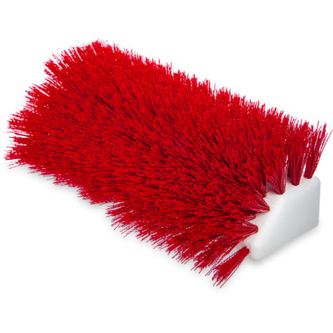 This scrub brush from Carlisle® provides maximum cleaning at three different angles. The red crimped bristles wash easily and prevent gathering of mold and mildew. It is great for use in commercial kitchens and the split shape is efficient for cleaning flat surfaces, along baseboards and around equipment. This scrub brush provides maximum cleaning at 3 different angles. Handles sold separately.