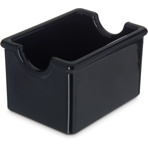 This black table top sugar caddy will keep your sugar packets neat and tidy on you dining table. It hold about 20 packets and is durable and dishwasher safe.