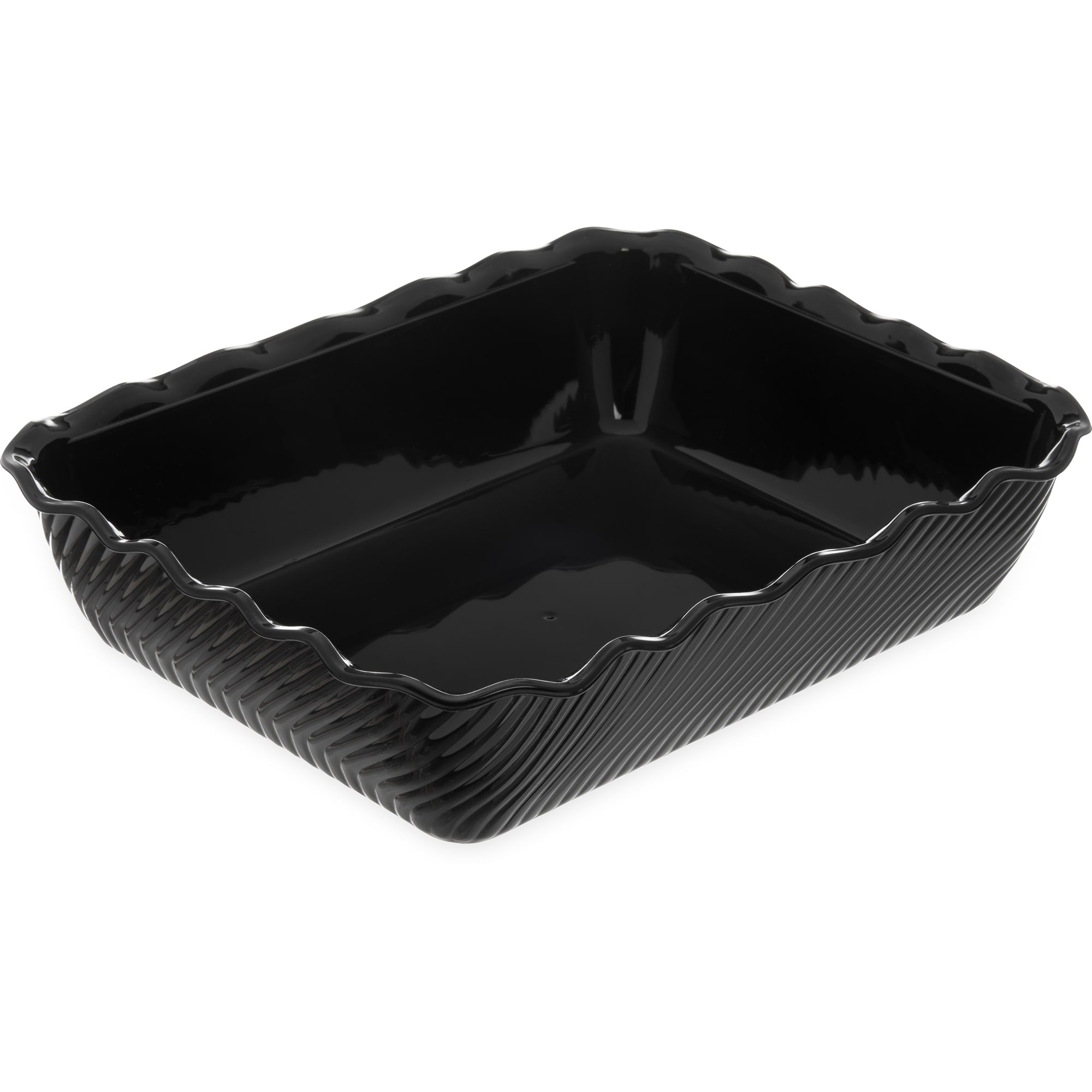 This 10 pound black crock is ideal for displaying potato salad, fruit salad, and more in your deli case. It has a beautiful swirl pattern with a high gloss finish and the durable SAN material is resistant to acids and oils.