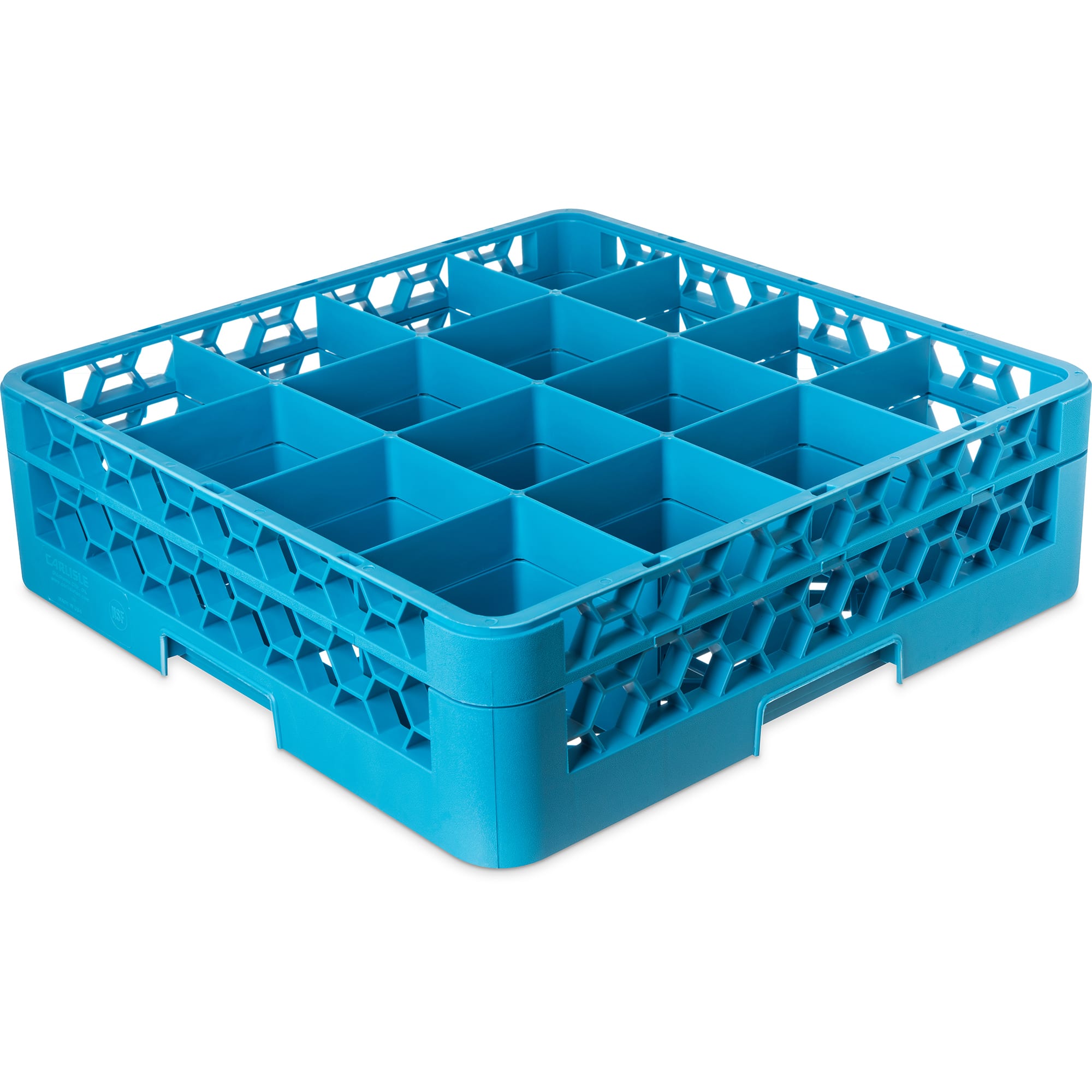 This Carlisle OptiClean Glass Rack with One Extender has 16 compartments and comes in a Carlisle Blue color with polypropylene construction. It is ideal for large and delicate glasses, and accommodates glasses up to 4‐3/16 " in diameter.