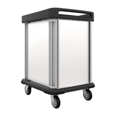 This Carlisle TQ Supreme cart holds 12 trays. The 270° door ensures the trays are easy to access. It has a top rail for napkins and cutlery and the full perimeter bumper protects walls.