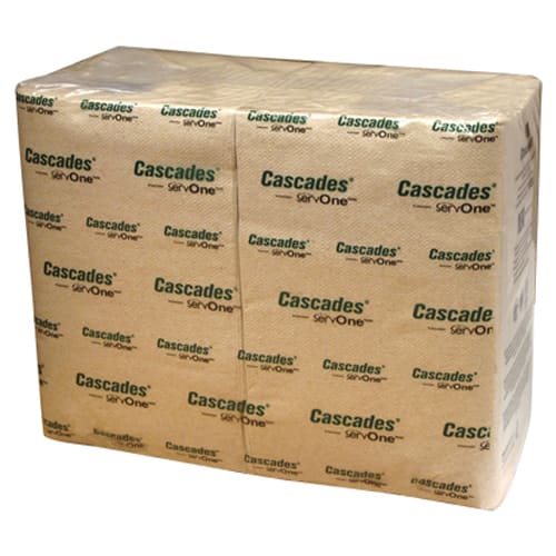 These Cascades napkins are designed to fit ServOne™ tabletop napkin dispensers. These napkins are made of 100 percent recycled fiber and are completely sealed in plastic packaging.