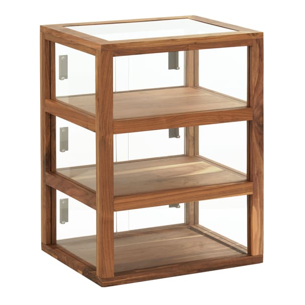 The Cal-Mil 22912-78 is an elegant 3-tier bakery display case from the Sydney collection. Crafted from handcrafted walnut wood, this case measures 21" x 17" x 28" and features clear acrylic doors for easy access and visibility. Its rustic design adds a touch of sophistication to any bakery or cafe, making it perfect for showcasing pastries and baked goods.