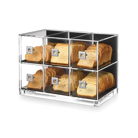Rosseto's 6 Drawer Acrylic Bakery Case adds versatility and style to your counter top display. The multiple drawers allow you to contain your bakery products including desserts, breads, donuts, pastries and bagels all in one neat presentation.