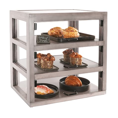 This 3 Tier Bakery Case from Cal-Mil will is perfect for your cafe! It is made of beautiful gray-washed pine wood and is a great way to display your delicious baked good.
