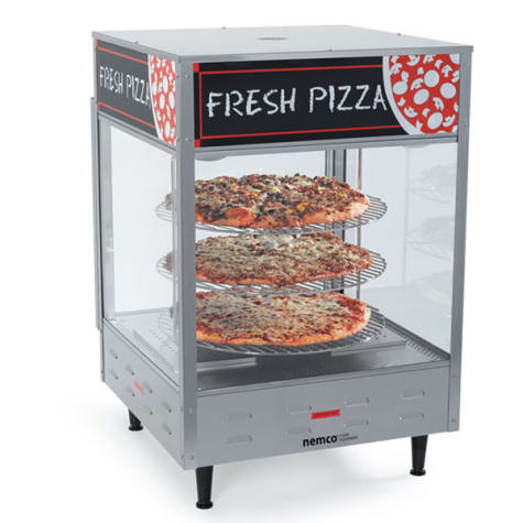 This Nemco heated display case is great for promoting sales of pizza, pretzels, or bagels. You can control the temperature so items will stay fresh. It has a durable stainless steel construction that is easy to clean and two bulbs inside so products are well lit.