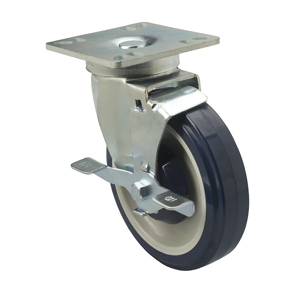 This Darling Foodservice Universal Caster set has a 5" polyurethane wheel that is great‐resistant and non‐marking. It also has a square stainless steel plate and brakes. This caster is temperature resistant from 140°F ‐ 212°F, and has a 250 lb. capacity per wheel.