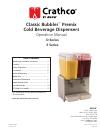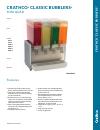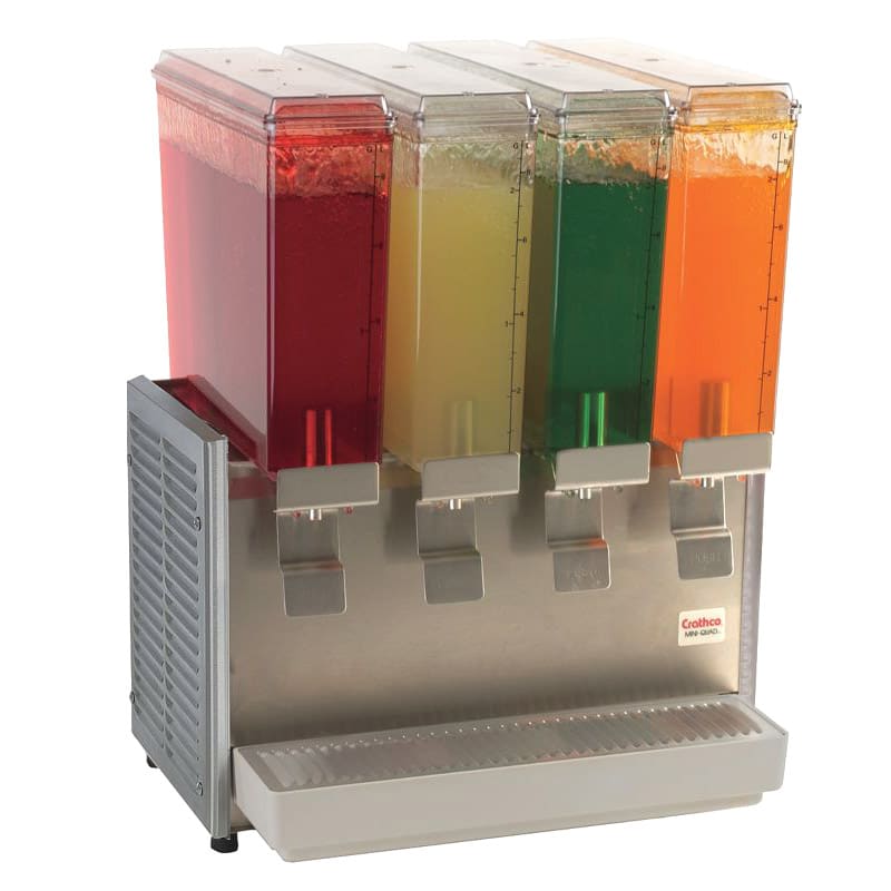 This Classic Bubblers beverage dispenser from Crathco is a generous yet compact pre‐mix dispenser with (4) 2.4 gallon bowls. The bowls have easy‐to‐read measuring marks and are separate to allow bowl cleaning and flavor changes without total system shut‐down. The bowls and covers are made of super‐strong polycarbonate material for long lasting durability and simple clean‐up.