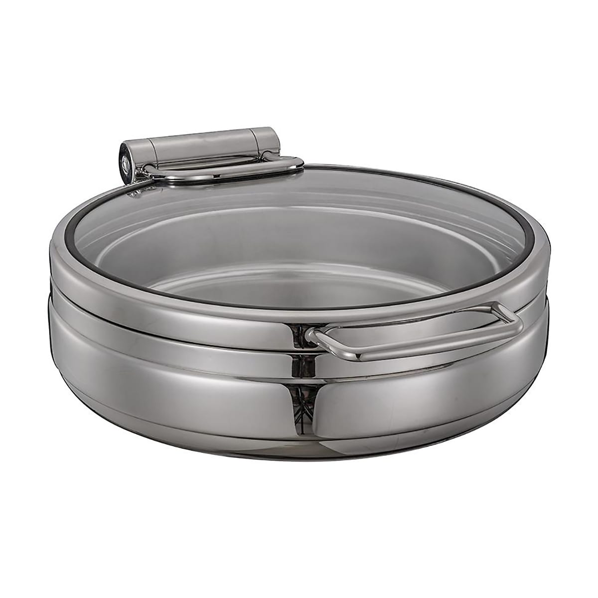 This Magnifico Round Induction Chafer from Bon Chef features durable stainless steel construction with a glass lid so guests can easily view the contents without opening.