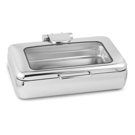 Enhance your buffet table with the Eastern Tabletop Jazz Rock chafer. This chafer has a hinged lid to help keep foods warm and the see through lid allows guests to see the contents. This chafer has a contemporary look along with heavy duty construction.