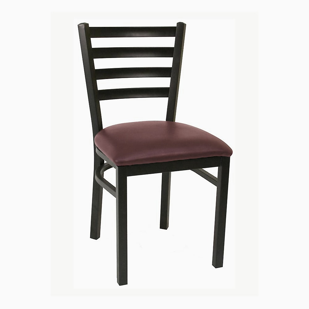 This American Table and Seating chair features a stylish ladder back design and textured black powder coat finish. Made with precision and uses welded 1‐1/8" square metal tubing for durability and stability. The textured black powder coat finish adds a touch of sophistication. This chair comes complete with plastic gliders to protect your floors. This meticulously designed chair is a great seating solution.