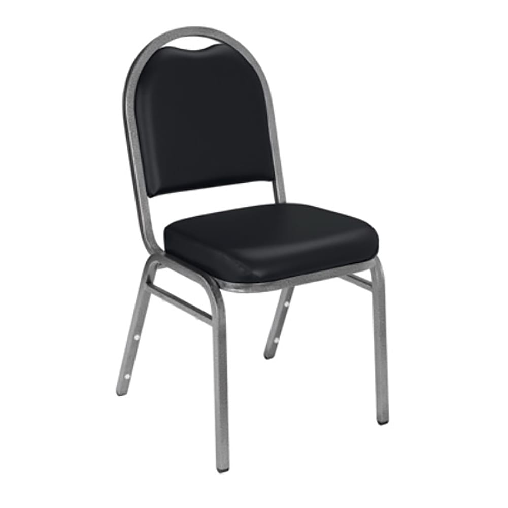 This stack chair is crafted with quality materials and thoughtful design, and combines comfort, functionality, and versatility to meet your seating needs with ease. The 9200 Dome-Back stack chair from National Public Seating is durable and classy enough to use in your busiest social setting, be it a dining room or corporate banquet hall. It features a strong square 18-gauge steel frame plus an under-seat H-shaped brace for extra support. The seat features supremely comfortable and spacious 2 inch-thick high-density foam padding with easy-to-clean vinyl upholstery and a waterfall-style edge. MDF core within both the seat and rounded backrest which has a built-in handle for easy moving and stacking. Fortifying stacking bars and twelve plastic bumpers protect the powder-coated paint finish from scratches when the chair is stacked (up to ten units high).