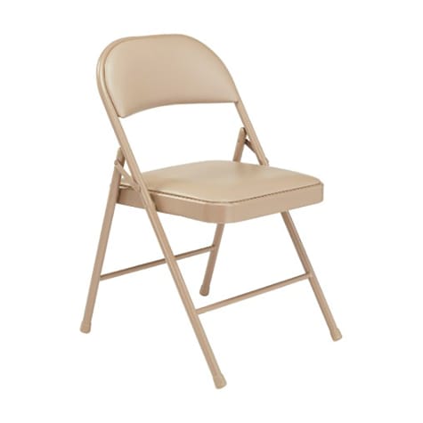 This beige padded folding chair is part of Basics by NPS® Folding Chairs and are suited for most commercial environments where a quality yet affordable solution is called for, and are vinyl-padded.