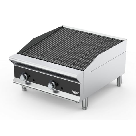 This 24 x 29-1/4 x 15-1/4" Vollrath® Medium-Duty Gas Charbroiler is sturdy. Versatile grill plates feature narrower surfaces on one side with integral channels designed to dispense excess fat while reducing smoke and flames. The flip side features flatter, wider grill surfaces ideal for fish and other delicate foods. Adaptor bars enable grill plates to be positioned away from heat for slower cooking and minimal flareups.
