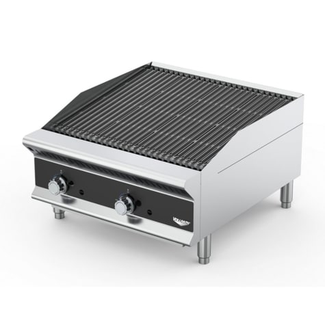 This 60 x 29-1/4 x 15-1/4" Vollrath® Medium-Duty Gas Charbroiler is sturdy. Versatile grill plates feature narrower surfaces on one side with integral channels designed to dispense excess fat while reducing smoke and flames. The flip side features flatter, wider grill surfaces ideal for fish and other delicate foods. Adaptor bars enable grill plates to be positioned away from heat for slower cooking and minimal flareups.