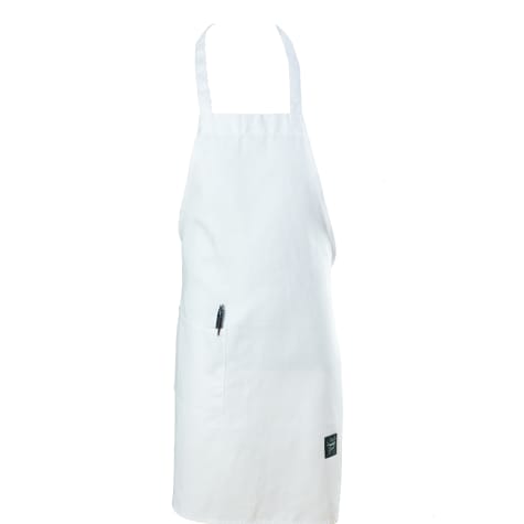 This Chef Revival® bib apron comes in a classic white color and features an 8 x 8" side pocket for storage. This apron is ideal for a variety of restaurants or bars.