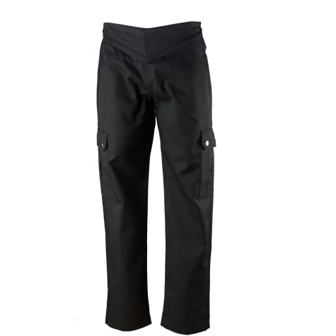 This ladies cargo pant from Chef Revival® is tailored for the female silhouette with a flat front panel and an elasticized rear waistband. It features a black color and also has two snap pockets on the legs and two rear patch pockets.
