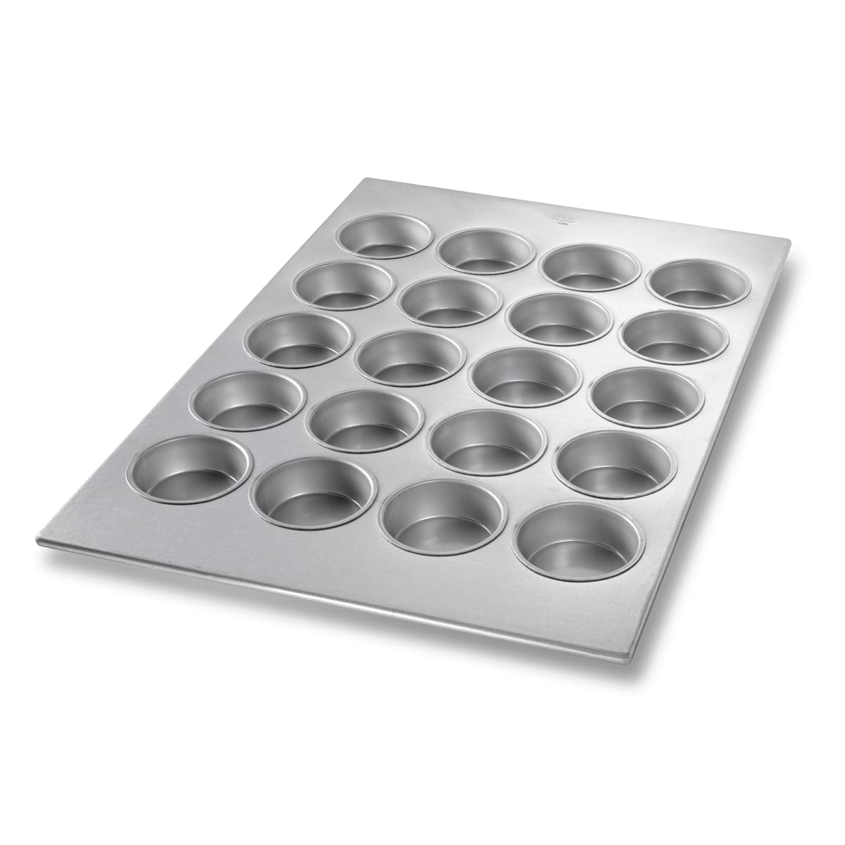 This Chicago Metallic Jumbo Muffin Pan is great for making oversized muffins or cupcakes. It is made from aluminized steel and has an arrangement of 4 rows of 5. Made for commercial ovens, does not fit most residential ovens.