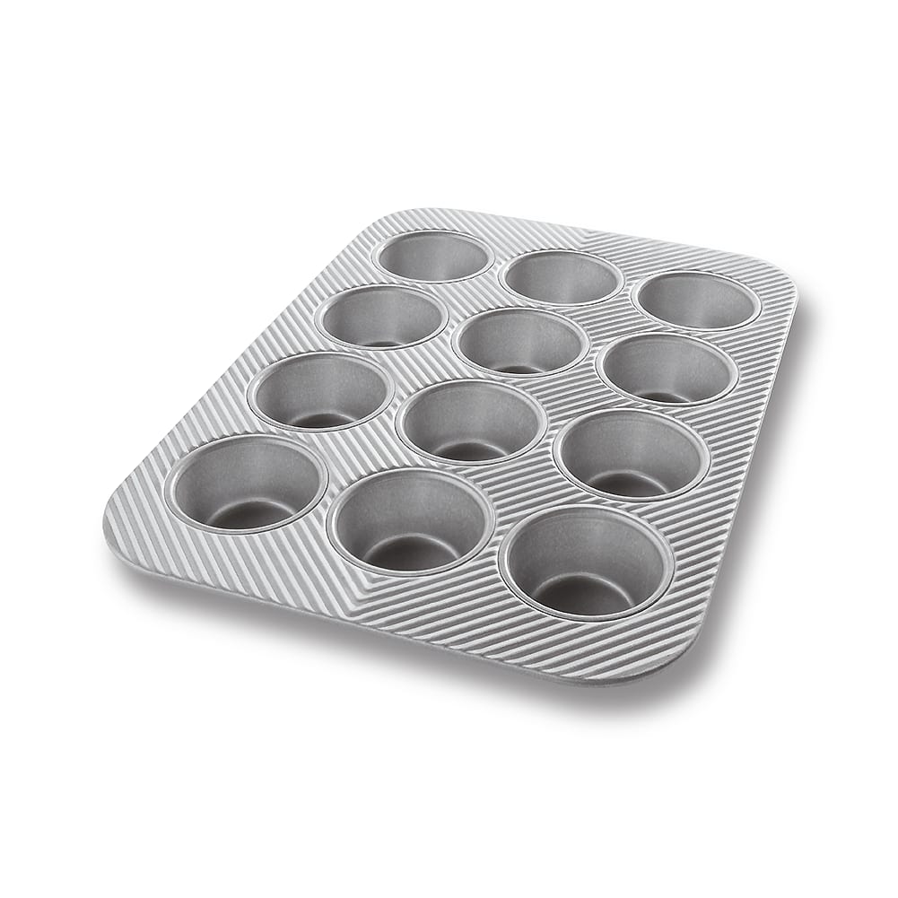 This Chicago Metallic Pan allows you to bake up to 12 cupcakes or muffins at a time. It is made from aluminized steel and has a glazed finish for non‐stick properties.