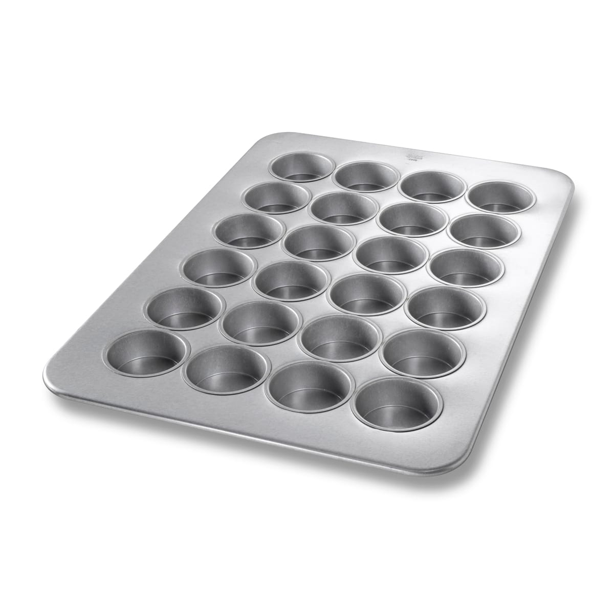 This Chicago Metallic Texas Muffin Pan is great for making oversized muffins and other baked goods. It is made from aluminized steel and has an arrangement of 4 rows of 6. Made for commercial ovens, does not fit most residential ovens.