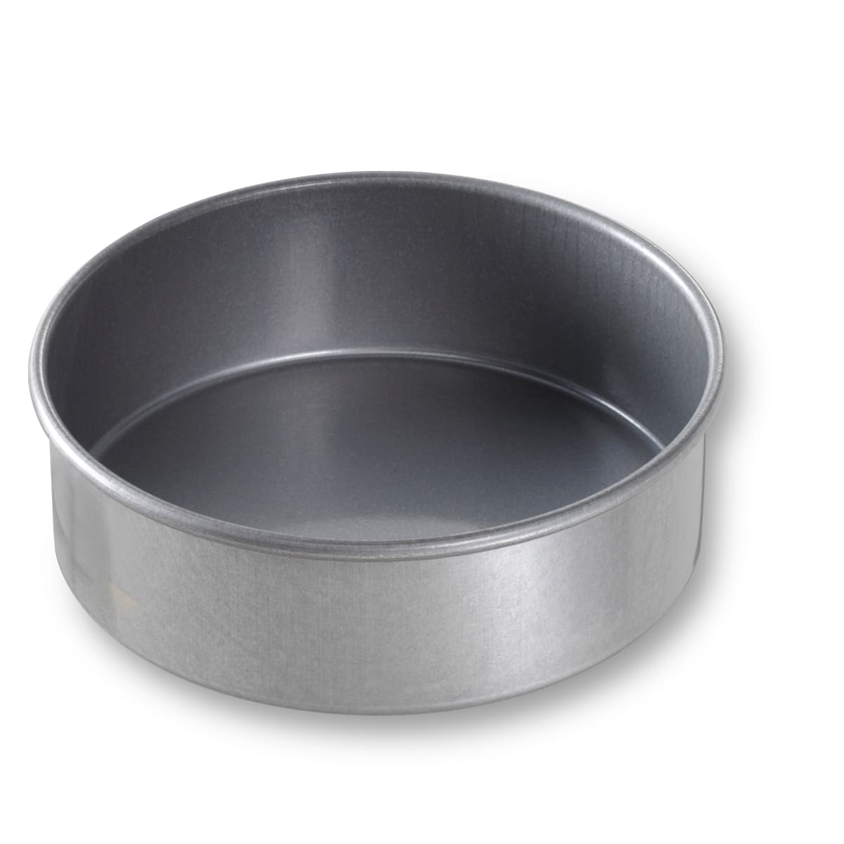This Chicago Metallic Round Cake Pan is a 6 Inches x 2 Inches size and is great for baking cakes and other goods. It is made from 26 gauge aluminized steel and has straight sidewalls. This pan has a plain finish.