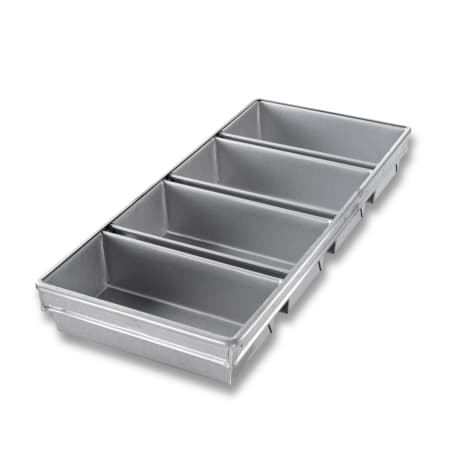 This Chicago Metallic Open Top Bread Pan allows you to bake up to four loaves of bread at once. It is made from 26 gauge aluminized steel, and has a glazed finish for non‐stick properties.