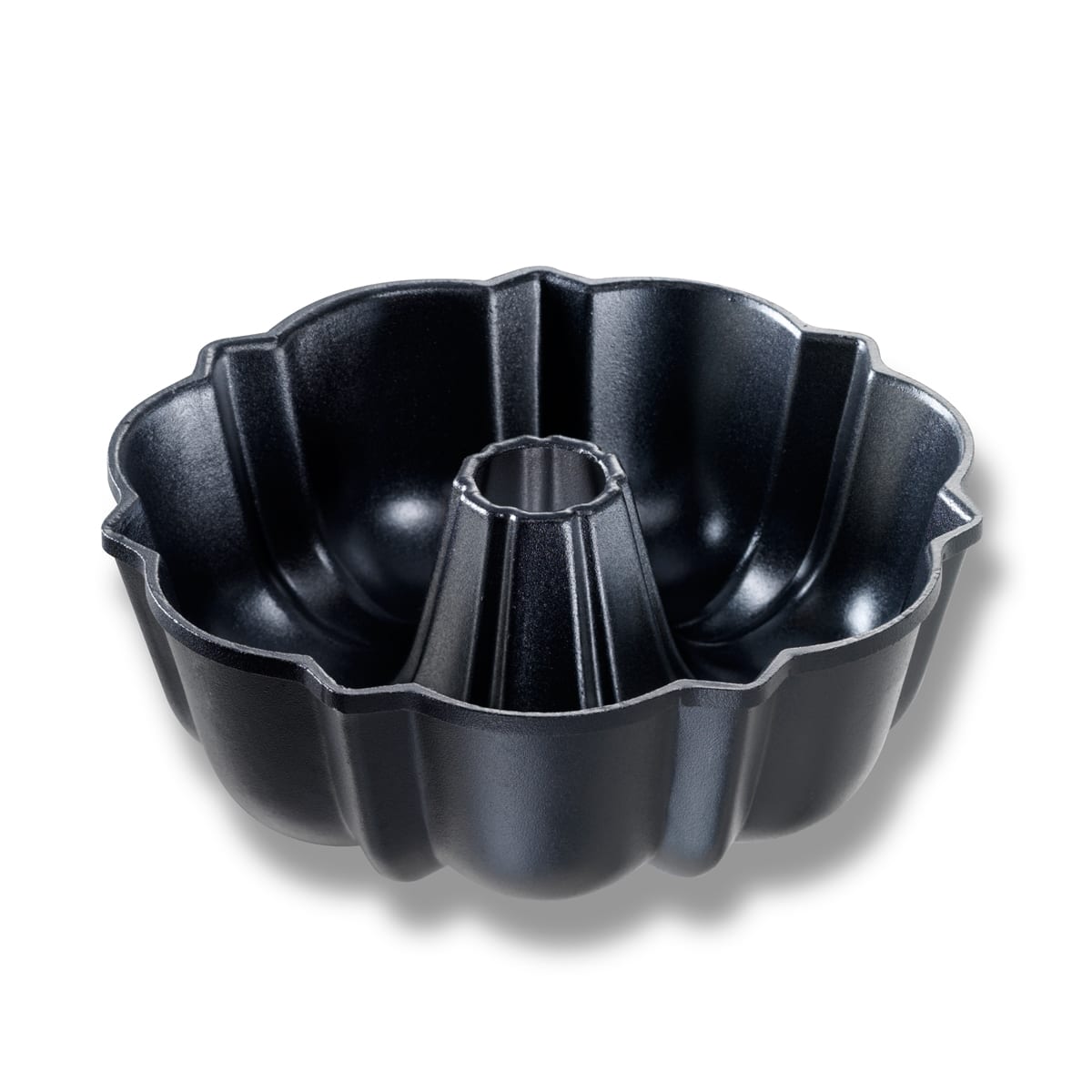 This Chicago Metallic Small Fluted Tube Pan is made from cast aluminum with a commercial non-stick black coating, which allows the cake to come out easily and maintain its classic shape.