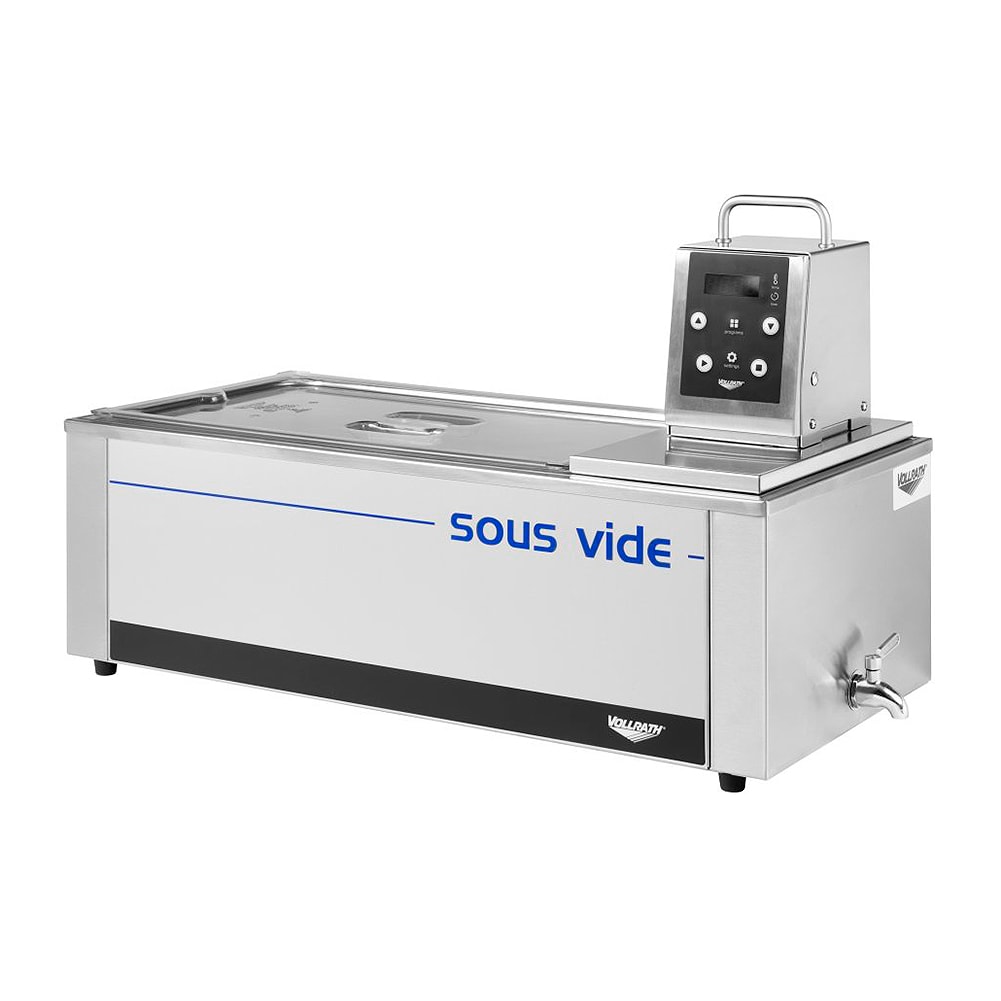 Elevate your cooking experience to professional levels with an immersion circulator, designed to bring precision, consistency, and flavor enhancement to every dish. The Vollrath® sous vide immersion circulator package easily and safely prepares a variety of food products. This package comes with an immersion circulator head, bath and cover, providing everything you need for operation. The spacious tank allows you to prepare multiple food items at one time. This immersion circulator works with the Vollrath in-chamber and out-of-chamber vacuum pack machines for your convenience. The two pump speed settings increase the versatility of this compact unit. The digital display shows temperature readings with 0.1-degree accuracy, and the digital controls allow you to program up to three cooking settings at a time for repeatable results. Sous vide cooking can be left unattended and reduces food waste thanks to a long forgiveness window, making this a low-risk, relatively inexpensive product to add to your kitchen.