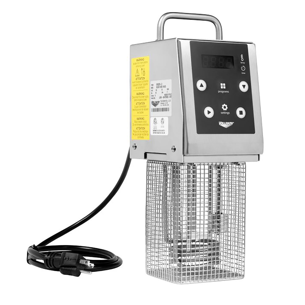 Elevate your cooking experience to professional levels with an immersion circulator, designed to bring precision, consistency, and flavor enhancement to every dish. The Vollrath® sous vide immersion circulator head easily and safely prepares a variety of food products. The digital controls allow you to program up to five cooking settings at a time for repeatable results. The digital display shows temperature readings with 0.1-degree accuracy and an audible timer indicates when the unit is up to temperature as well as when the cooking cycle is completed. Products being cooked with the sous vide method can be left unattended and reduces food waste thanks to a long forgiveness window. The increased wattage makes start-up times up to 25% faster than Vollrath's previous units.