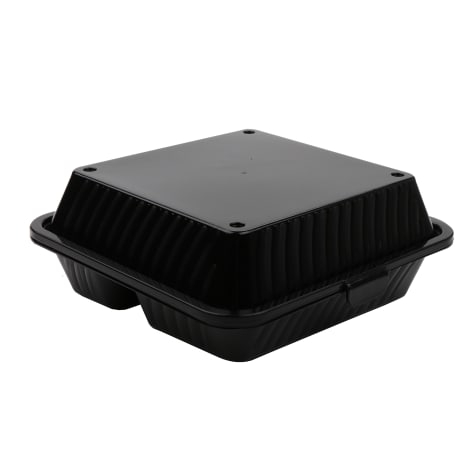 G.E.T. EC-09-1-BK Black 3-Comp. Eco-Takeouts Clamshell - Dozen