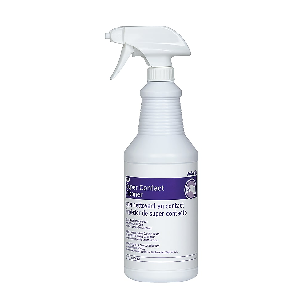 Use KAY Super Contact Cleaner as a pre‐treatment for difficult tasks such as baked‐on grease, Works on stainless steel, grills, oven hoods, cooler and freezer doors, fryer back splashes, and more.