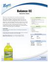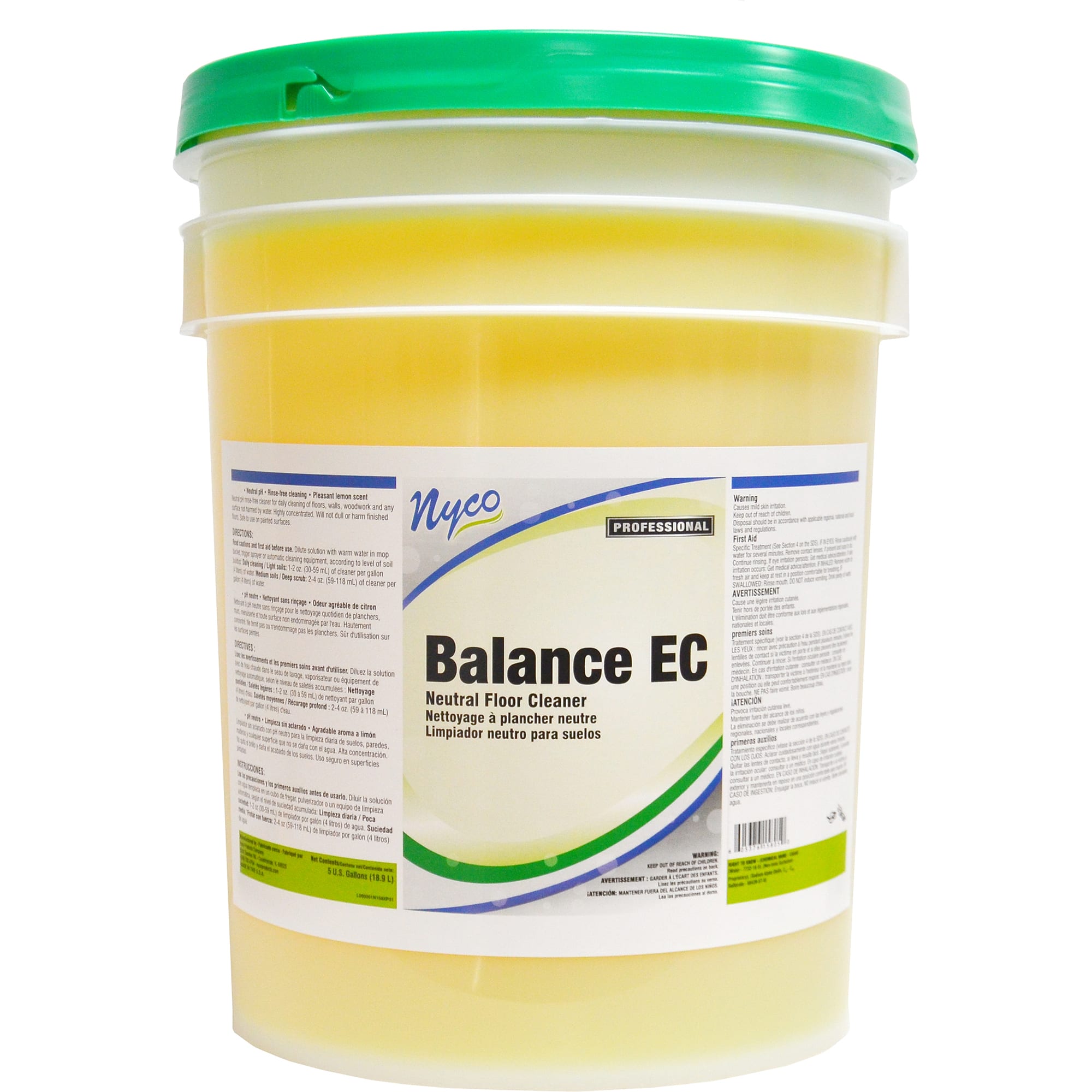 This neutral, no rinse cleaner from Nyco® is for use on floors and all water-safe surfaces. Balance EC cleans and removes soils from floors, walls, woodwork, countertops, fixtures, etc. No rinse formula will not dull or damage floor finishes, improving the appearance and extending the life of the coating. Use in mop & bucket, spray & wipe cleaning, and in automatic scrubbers. Use on resilient tile, stone, ceramic/porcelain, concrete, marble, sealed wood, and terrazzo floors. Balance EC is safe on painted surfaces, metal, plastic, glass, and fiberglass.