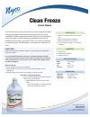 Clean Freeze professional freezer cleaner from Nyco® is perfect for use in frozen food lockers, cold storage areas, flash freezing equipment and other areas where water cannot be used due to subfreezing temperatures. Removes dirt and debris, melts frost and ice when cleaning. Formulated to be used in temperatures as low as minus 40°F. Does not contain methanol or ethylene glycol. Nonflammable, non-poisonous and safer for users.