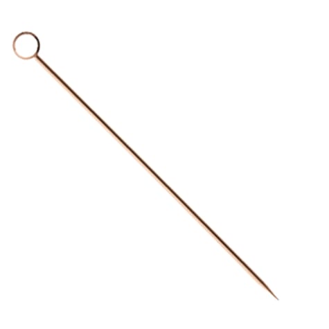 This Mercer Culinary Barfly Cocktail Pick easily pierces garnishes and can be used to top off drinks. It is designed not to fall into martini glasses. This pick is made from 18/8 stainless steel with a copper plated finish and has a circle top.
