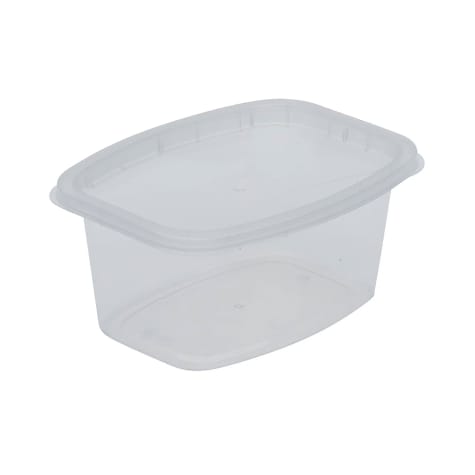 These Cube Packaging 12 ounce translucent containers are made using 20% pre‐consumer recycled content from unused food safe material. These containers are great for carry out orders. The lids are Cube Packaging model DR‐ORL‐C raised lid or model DR‐RL‐C recessed lid.
