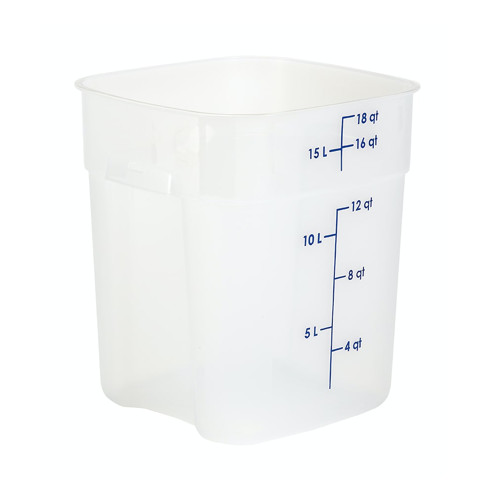 These CamSquares® FreshPro Storage Containers are made from cost-effective polypropylene material and are engineered for easy inventory checks, ensuring efficient use of storage space. The FreshPro series introduces a modern touch with carefully designed molded-in, recessed handles, optimizing space, promoting secure handling, and facilitating precise pouring.