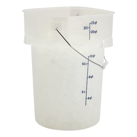 Built to handle the demands of busy commercial kitchens, the Cambro Pail with Bail is a heavy-duty 22-quart utility pail . Made from durable, food-safe polypropylene, it resists stains, odors, and impact from everyday use. The reinforced bail handle provides secure, comfortable carrying, while the smooth interior surface allows for quick and easy cleaning. Ideal for transporting, storing, and prepping ingredients, this pail offers reliable performance and long-lasting value for foodservice operations.