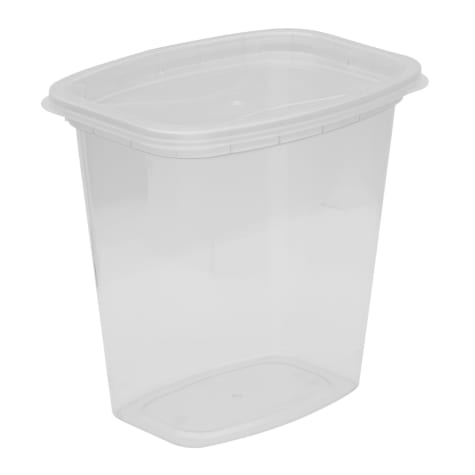 These Cube Packaging 32 ounce translucent containers are made using 20% pre-consumer recycled content from unused food safe material. These containers are great for carry out orders.