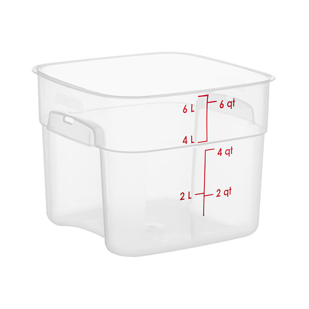 Crafted from cost-effective polypropylene material, these containers are engineered for easy inventory checks, ensuring efficient use of storage space. The FreshPro series introduces a modern touch with carefully designed molded-in, recessed handles, optimizing space, promoting secure handling, and facilitating precise pouring.