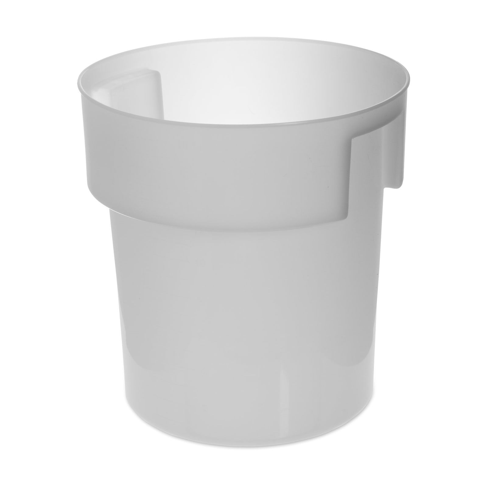 Keep your kitchen organized with the Carlisle Bain Marie 18-quart container. Made from durable, BPA-free polyethylene, this container is NSF certified for food safety. Its seamless design ensures easy cleaning, while molded-in recessed handles and outside stacking lugs make handling and storage simple. Perfect for restaurants, catering, and commercial kitchens.