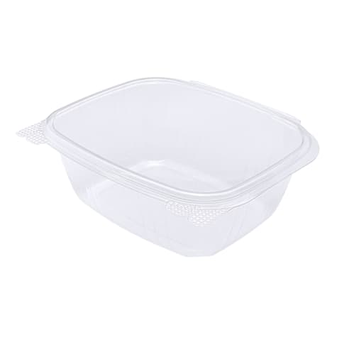 These PET hinged containers are made of crystal‐clear plastic that allows for easy visibility. They are crack resistant with a typical temperature range of ‐10° F to 120° F.