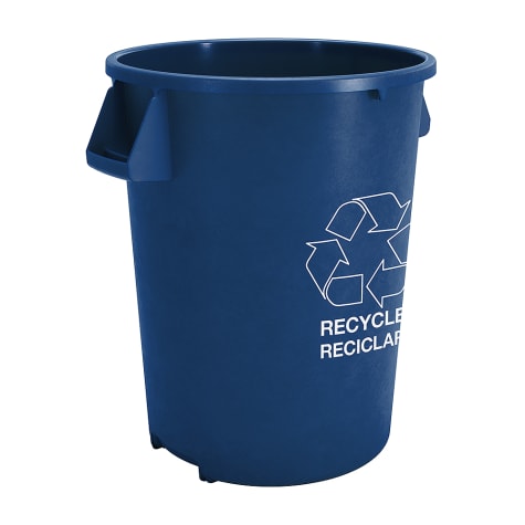 This Bronco™ 32 gallon recycle container is made of durable plastic and reinforced with drag skids for maximum longevity and allowing the can to be dragged over any surface. This container also features a stackable design with the elimination of the cans vacuum seal during transport.